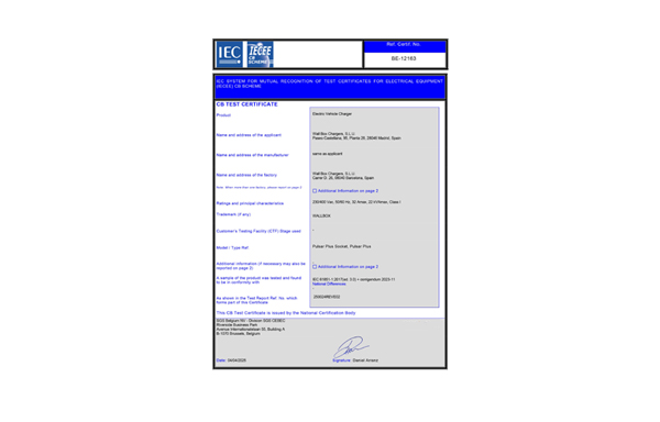 充電樁 CB 證書是基于IECEE CB 體系(國際電工委員會電工產品合格測試與認證體系)的全球互認安全證書,核心依據 IEC 61851 系列標準,是產...